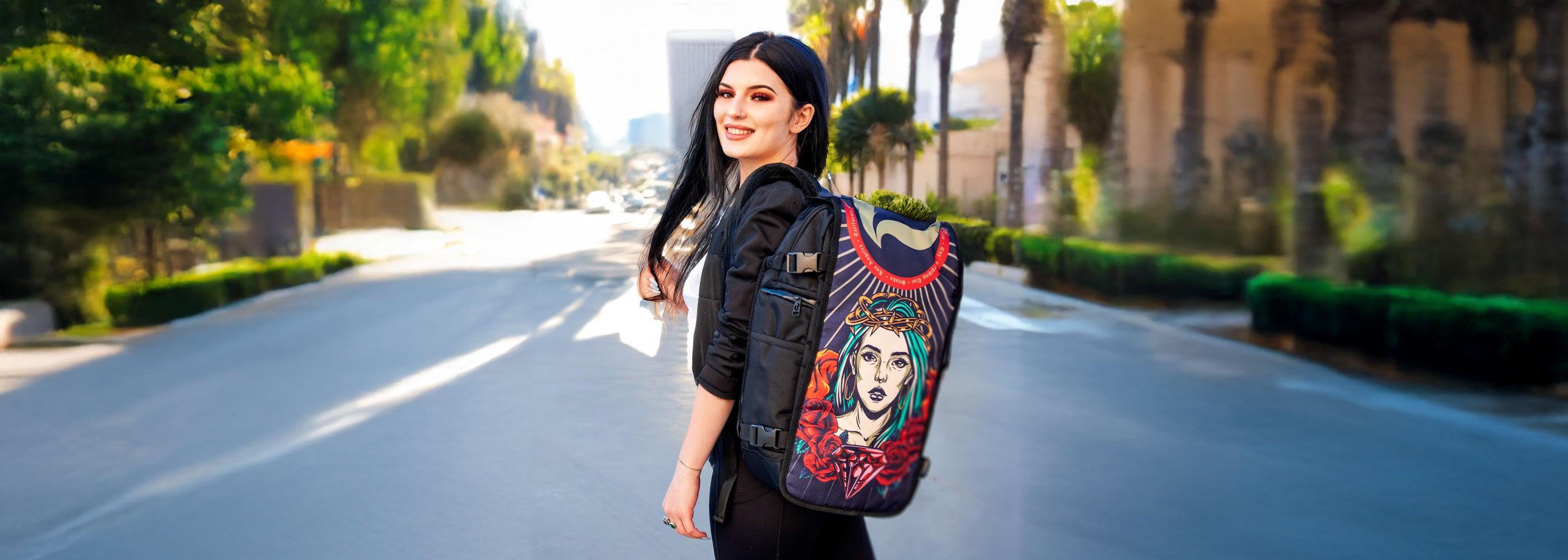 Every FaceOff backpack starts its life in the bustling streets of Los Angeles, where design meets diversity. Designed, printed, and assembled in the USA, our bags represent the pinnacle of local craftsmanship. We utilize advanced, eco-friendly technologies to ensure each backpack not only looks great but also stands up to the rigors of daily life. Learn about our exclusive process, developed over years, that allows for endless customization while maintaining superior quality and durability